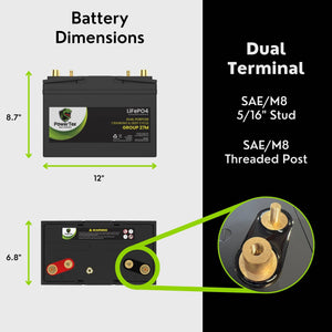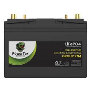 PowerTex Batteries BCI Group 27M Dual Purpose Lithium Deep Cycle & Cranking LiFePO4 RV & Marine Battery