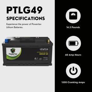 PowerTex Batteries BCI Group 49 / H8 Lithium LiFePO4 Automotive Battery