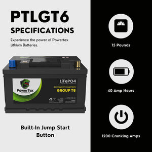 PowerTex Batteries BCI Group T6 / L2 Lithium LiFePO4 Automotive Battery