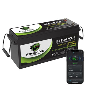 PowerTex Batteries 12V 200Ah LiFePO4 Bluetooth Lithium Iron Phosphate Battery