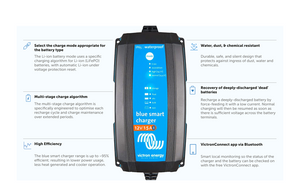 Victron Energy Blue Smart IP65 12-Volt 15 amp 120VAC Battery Charger is the new professional battery charger with built-in bluetooth The 7-step charging algorithm gets the best out of your battery....
