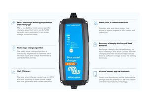 Victron Energy Blue Smart IP65 24-Volt 5 amp 120VAC Battery Charger is the new professional battery charger with built-in bluetooth The 7-step charging algorithm gets the best out of your battery....